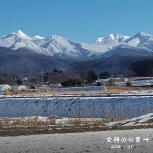 田畑の背後に構える八ヶ岳は、
