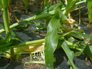 畑のトウモロコシがスクスク育っているときに、事件が起きました。周りは鹿よけネットで囲われて進入できないはずなのに、トウモロコシが食べ荒らされていました....ショック。きっと、たぬき・ハクビシンなど小さな動物がネットの下をくぐって食べていると思います....ショック。何か良い方法がないか、現在模索中です。